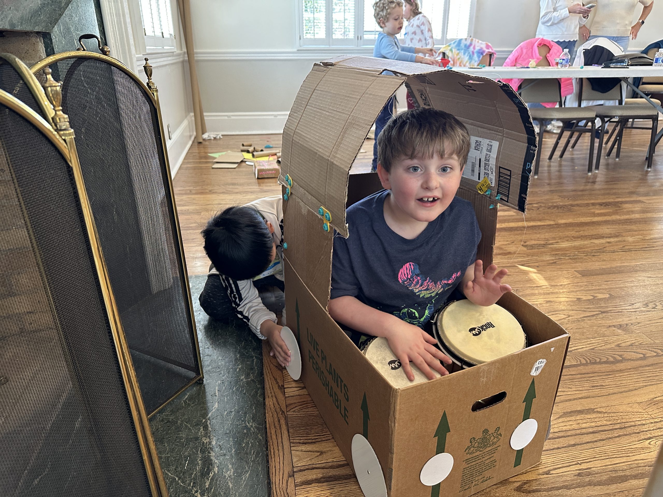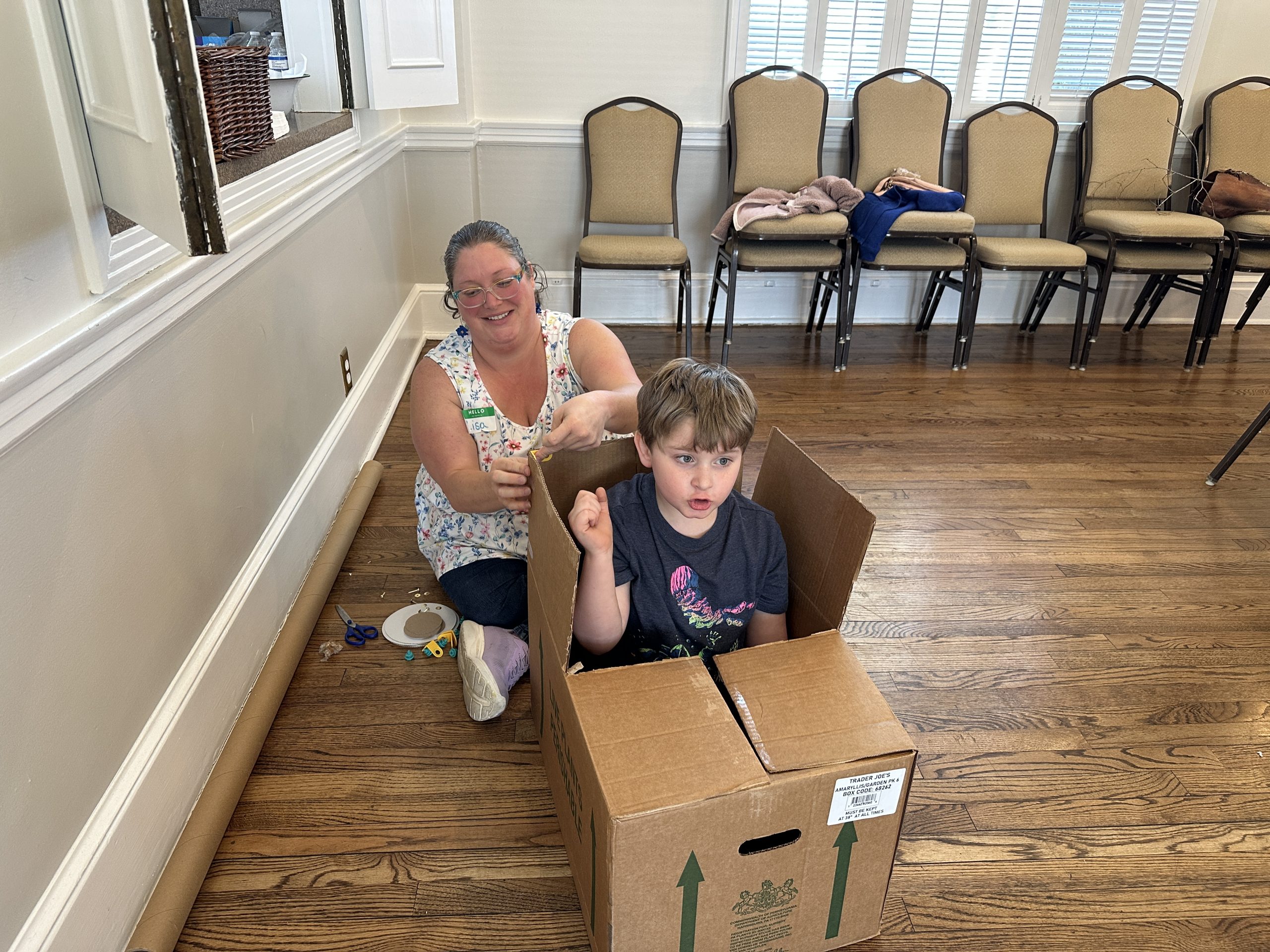 Children and caregivers worked side by side to transform recycled materials into imaginative works of art. Cardboard tubes, boxes, and other reusable supplies filled the tables as little hands cut, glued, and assembled with excitement and concentration. Along the way, families also learned more about recycling and the impact that excess trash can have on our planet.